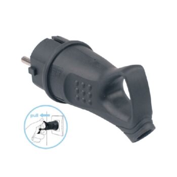 Spina standard franco/tedesco 16A 2P+T in gomma con gancio estrazione Nera