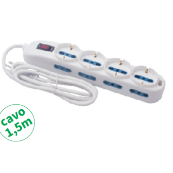 MULTIPRESA CON CAVO 1,5 MT 6 USCITE P17/11 2P+T 10/16A BIPASSO SPINA 16A 2P+T CON INTERRUTTORE