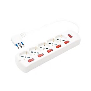 MULTIPRESA CON CAVO CON PROTEZIONE BIANCA 6 USCITE 4BIPASSO 2P+T 10/16A L.1-5M + SPINA 10A PROTEZIONE SOVRAC.