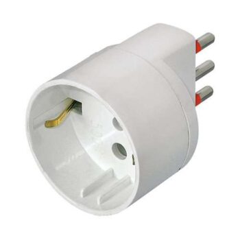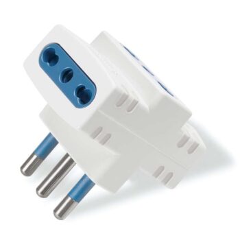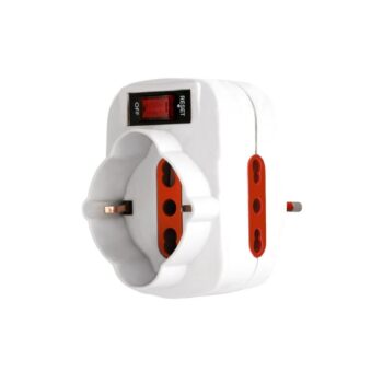Consente il posizionamento anche in spazi ridotti.Adattatore triplo in policarbonato, spina 2P+T 10A rotante di 90°, con spinotti in ottone annegati e protetti2 prese 2P+T 10/16A+1 Schuko 10/16A con terra laterale e centraleCon interruttore luminoso ON/OFF e protezione da sovraccaricoCostruita secondo CEI 23-5, CEI 23-16, CEI 23-50.Portata: 1500 WColore: bianco