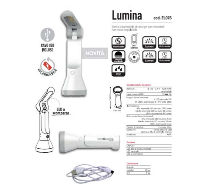 CFGEL076 – LUMINA – TORCIA RICARICABILE DOPPIA ILLUMINAZIONE