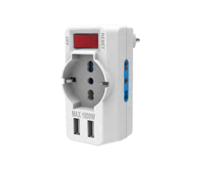 EC30193 – ADATTATORE PROT. SOVRACCARICO SPINA 10A 1 PRESA P40 BIPASSO 2 USB A+A