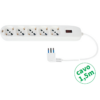 MULTIPRESA CON CAVO CON PROTEZIONE 5 PRESE UNIVERSALI MT1,5 + PROTEZIONE SOVRACCARICO SPINA 10A BIANCA