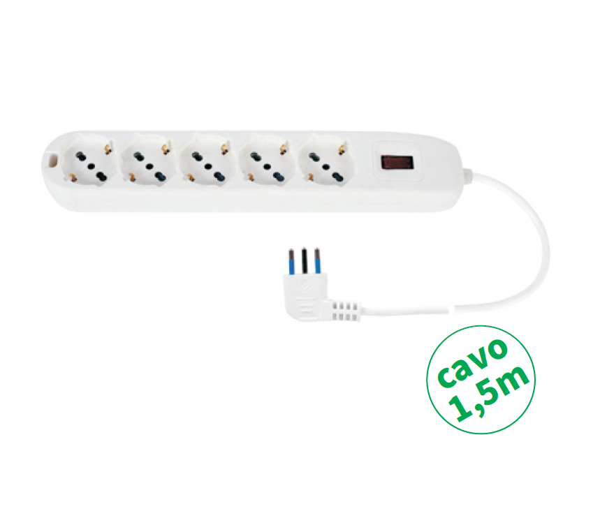 EC30211 – PROMO* MULTIPRESA 5 PR. UNIV. MT1,5 CAVO+ PROT. SOVRA. SP. 10A (RL3515)