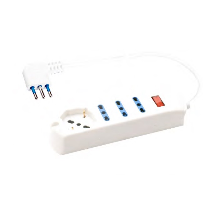 MULTIPRESA CON CAVO CON PROTEZIONE BIANCA 9 USCITE 4BIPASSO 2P+T 10/16A L.1-5M + SPINA 10A PROTEZIONE SOVRAC.