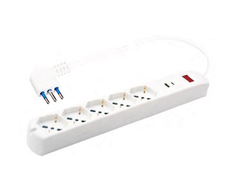 EC30237 – MULTIP. 5 USCITE UNIV. 2USB A+C PROT. SOVRAC. SP 10A CAVO 1,5M 2500W BCA