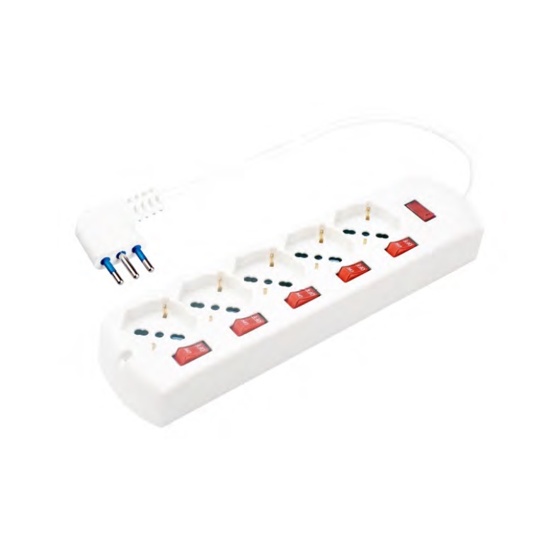 EC30554 – MULTIPRESA 5P P40 INT. SING. 10A L=1,5M PROTEZIONE DA SOVRACARICO