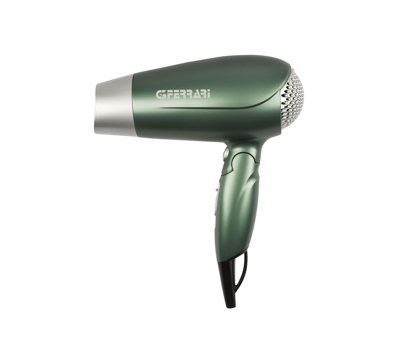 CARATTERISTICHE TECNICHE Asciugacapelli da viaggio 2 velocità / temperature Manico pieghevole Doppio voltaggio Concentratore daria Passacavo con appendino Alimentazione: AC 120/230V ~ 50/60Hz Potenza: 1200W Dimensioni (L x H x P): 16 x 22/14 x 6.5 cm Peso: 350g