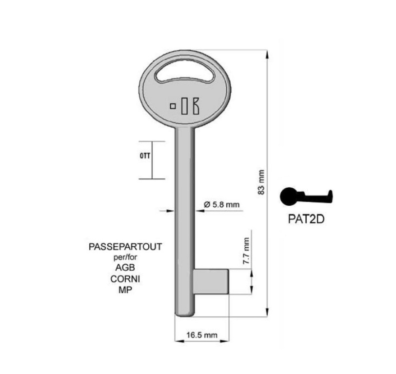 KEYPAT1D – CHIAVI PATENT OTTONE PASSEPARTOUT BONATI MPV PERINO CONF.25 (6P3D)