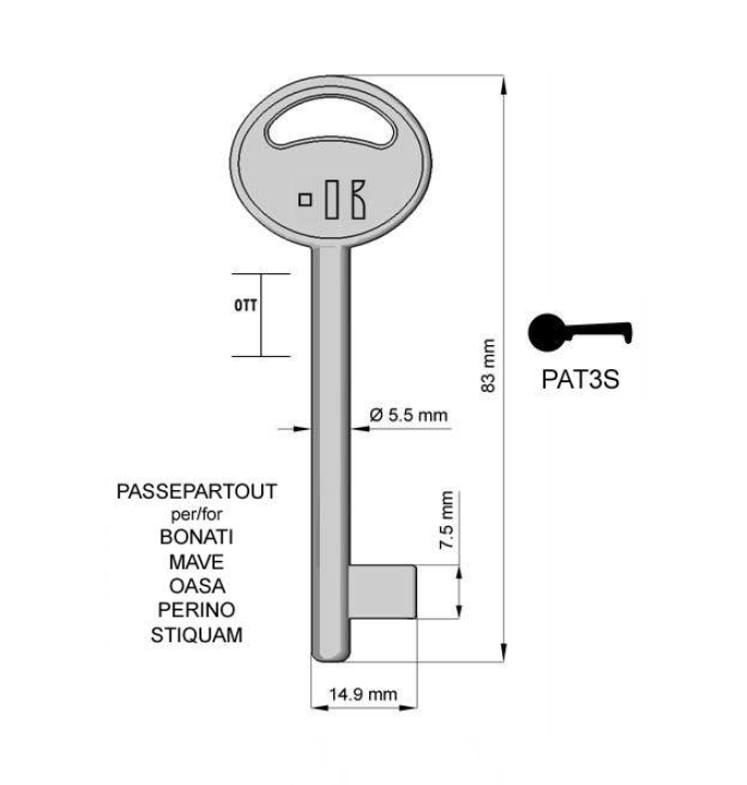 KEYPAT3S – CHIAVI PATENT OTTONE PASSEPARTOUT BONATI MAVE OASA PERINO STIQUAM CF.25 (6P2S)