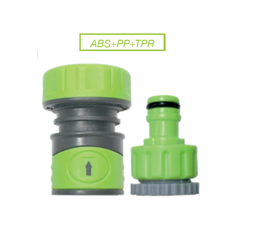 SET 2PZ RACCORDO RAPIDO ACQUASTOP 3/4 SOFTOUCH KOMBO GARDEN PRO IN ABS+PP+TPR, + 1 INNESTO A RUBINETTO 1/2-3/4