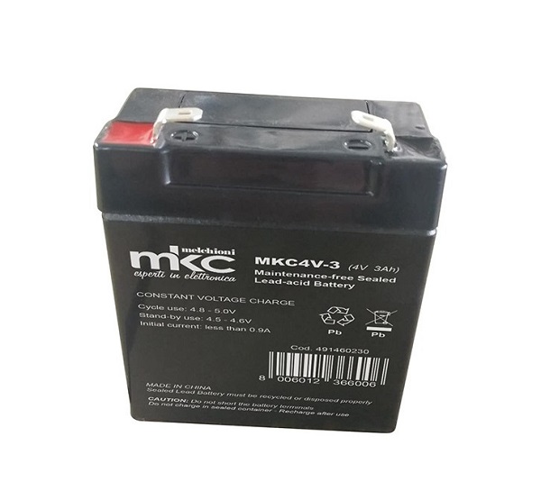 MEL491460230 – BATTERIE AL PIOMBO RICARICABILI 4V 3AH TERMINALE FASTON 4.8
