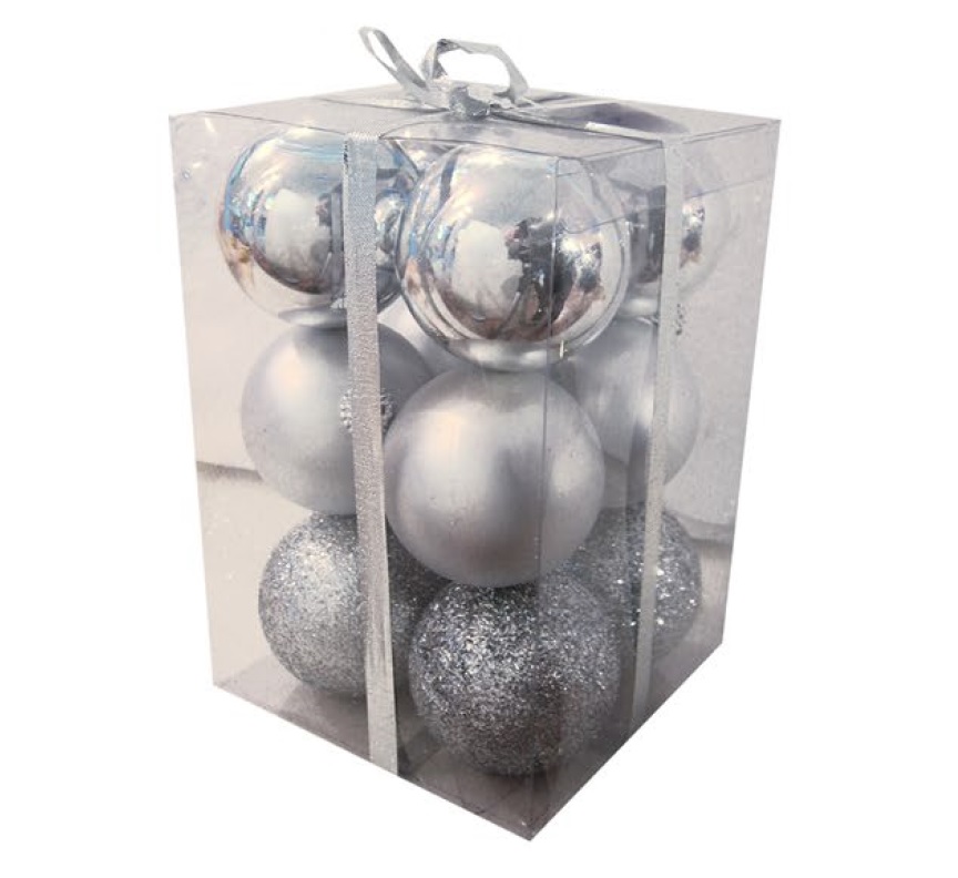 PQB1826 – 12 SFERE DIAM 60MM ARGENTO LUCIDO OPACO E GLITTERATO