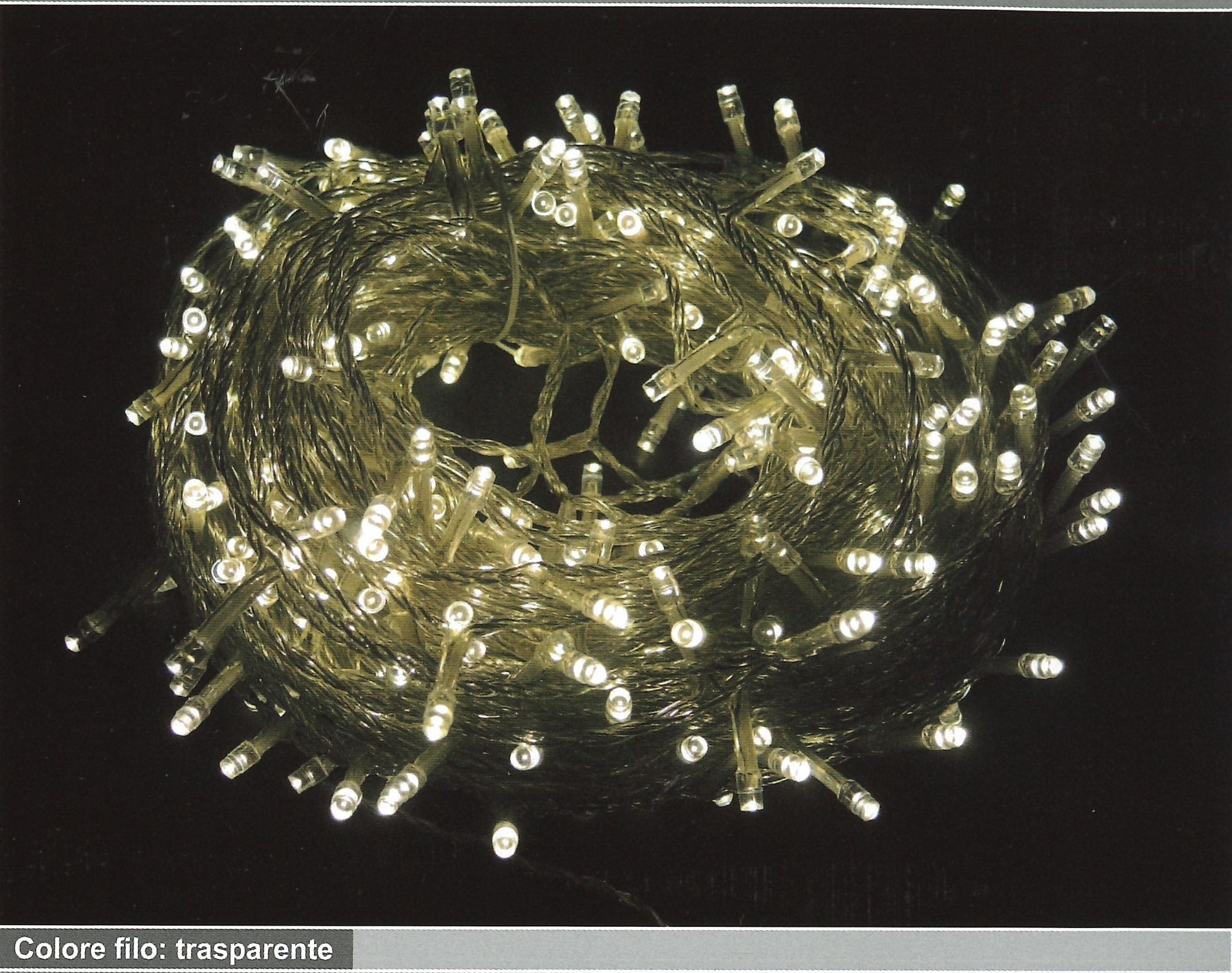PQD2361 – 300 LED LUCE CALDA – 42 EFFETTO FIAMMA + 258 LUCE FISSA FILO TRASPARENTE