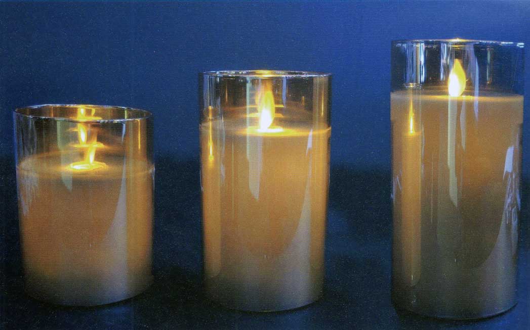 PQD2756 – CANDELA IN VETRO CHAMPAGNE EFFETTO VERA FIAMMA – LED L. CALDA – H.CM 12,5-