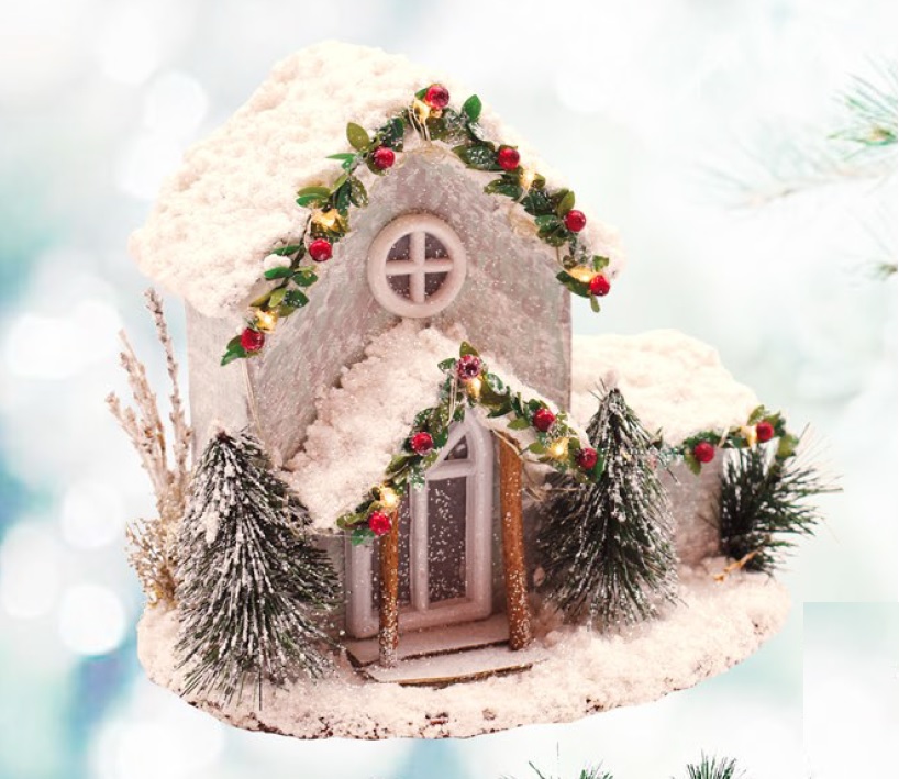 PQF4677 – CASETTA INNEVATA CON LUCI CM 21X19X15 20 LED LUCE FISSA