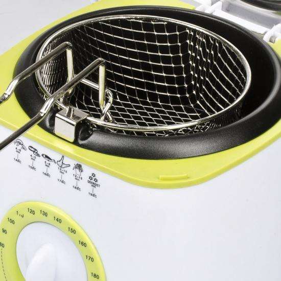 Capacità 1 litro Cestello in acciaio inox alimentare Temperatura regolabile (80° – 190°C) Spia di funzionamento e di temperatura raggiunta Filtro removibile Oblò di controllo Piedini antiscivolo Alimentazione: AC 220-240V ~ 50/60Hz Potenza: 850-950 W Dimensioni (L x H x P): 20 x 21 x 18 cm Peso: 1,15 Kg