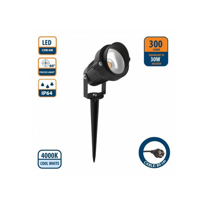 VELIS730 – FARETTO LED 6W DA ESTERNO IP64 CON CAVO E PICCHETTO –