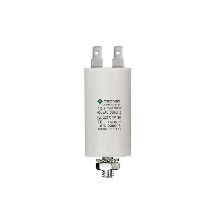 CONDENSATORE DI SPUNTO PER MOTORI ELETTRICI 450V UF 12 2+2 PERNI CON VITEM8
